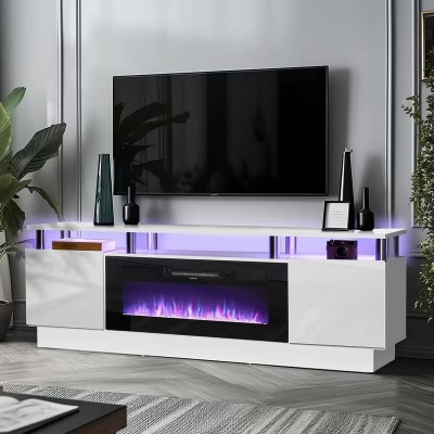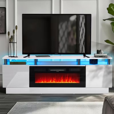 الطلاء > متجر الساعات > مستودع محليمشغل تلفزيون مع موقد كهربائي 36 بوصة، مركز ترفيهي بإضاءة LED، حامل كونسول تلفزيون من طابقين لأجهزة تلفزيون حتى 80 بوصة، موقد لغرفة المعيشة، (أبيض/أسود)