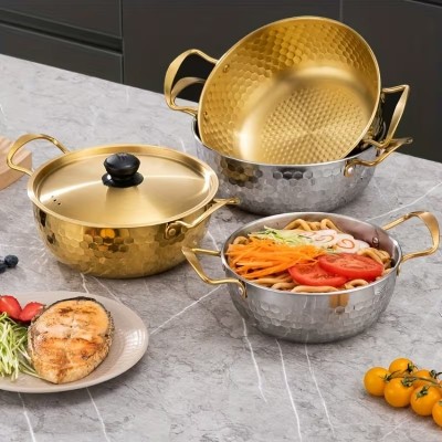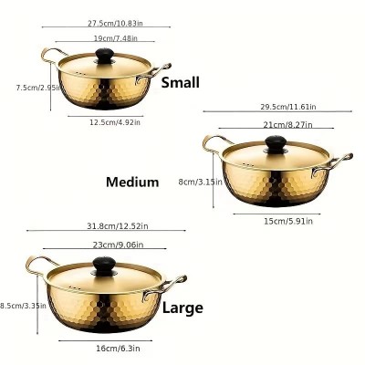 [مجموعة أواني طهي من الفولاذ المقاوم للصدأ] 3 قطع مجموعة أواني طهي من الفولاذ المقاوم للصدأ | قدور شوربة مزدوجة الأذن متعددة الوظائف مع أغطية، وعاء ساخن كوري، وعاء معكرونة ومأكولات بحرية لموقد تحريضي، تخييم خارجي - آمن لغسالة الأطباق، فولاذ مقاوم للصدأ 304