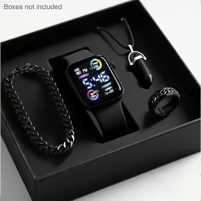 الطلاء > متجر الساعات > 4 قطع مجموعة ساعة رقمية إلكترونية LED رجالية وقلادة وخاتم - ساعة ذكية عصرية مع سوار مطابق، متوافقة مع الهواتف الذكية / الأجهزة اللوحية / أجهزة الكمبيوتر المحمولة - هدية عيد ميلاد / عيد ميلاد / عيد حب له / لها