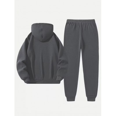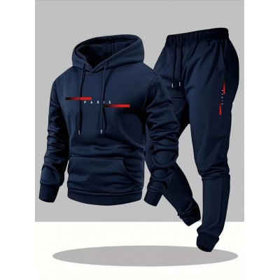 الطلاء > ملابس وإكسسوارات > [مجموعة هودي رجالي وسراويل] 2 قطعة مجموعة هودي رجالي عادي برسوم كارتونية باريسية وحروف وسراويل رياضية | هودي، قياس واسع، قماش قابل للتمدد قليلاً، مزين بنقوش للخريف / الشتاء